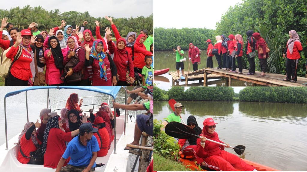 PURWOREJO: sebanyak 40 orang pengurus DWP (Dharma Wanita Persatuan) Kab. Purworejo gathering organisasi di Demang Gedi. Menikmati makanan khas Desa Gedangan, naik perahu dan kayak menyusuri mangrove Demang Gedi.